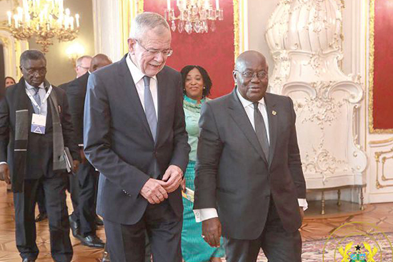 In 2018, President Nana Addo Dankwa Akufo-Addo participated in the High-Level Forum Africa–Europe in Vienna, and in 2019 he attended the R20 Austria World Summit, also in Vienna. On both occasions, President Akufo-Addo held bilateral talks with Austrian President Alexander Van der Bellen.
